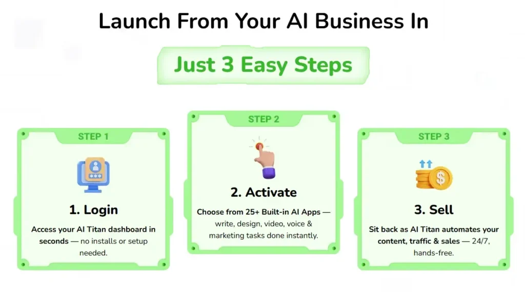 Discover the exact step-by-step roadmap to turn AI Titan into your full-time income machine — even if you’re starting from scratch. Learn how to launch, scale, and automate your digital empire fast.